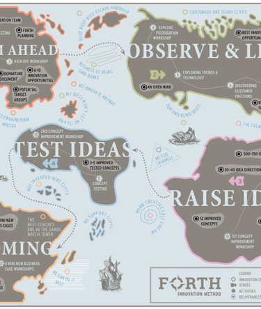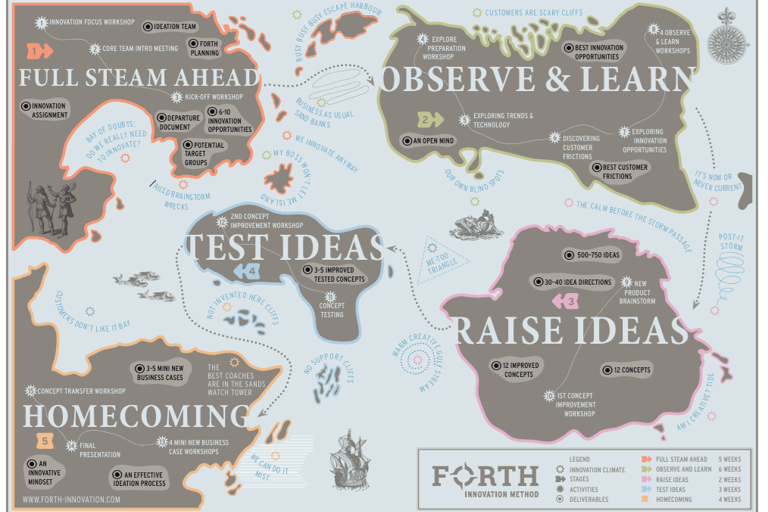FORTH bestaat uit vijf stappen; van vage ideeën naar gevalideerde concepten, inclusief businesscases;