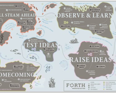 My approach to innovation management is built on one core belief: every organization has untapped creative potential. My job is to help you unlock it. Therefore I use the FORTH Innovation methodology It is a structured and practical approach for developing new products, services, experiences or business models, especially in uncertain or early-stage innovation contexts. It stands for Full Steam Ahead, Observe & Learn, Raise Ideas, Test Ideas, and Homecoming, a five-step journey from fuzzy ideas to validated concepts including business cases.