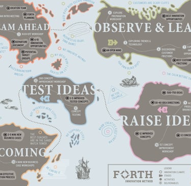 Deze methodiek doorloopt vijf duidelijke fases: Full Steam Ahead (ambitie stellen), Observe & Learn (discover), Raise Ideas (ideation), Test Ideas (testen) en Home Coming (concepten met business case). Het resultaat: 3-5 concrete concepten met volwaardige business cases, getoetst bij echte klanten en gedragen door de organisatie.